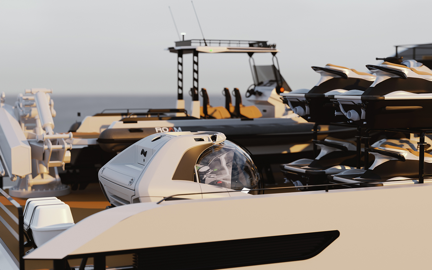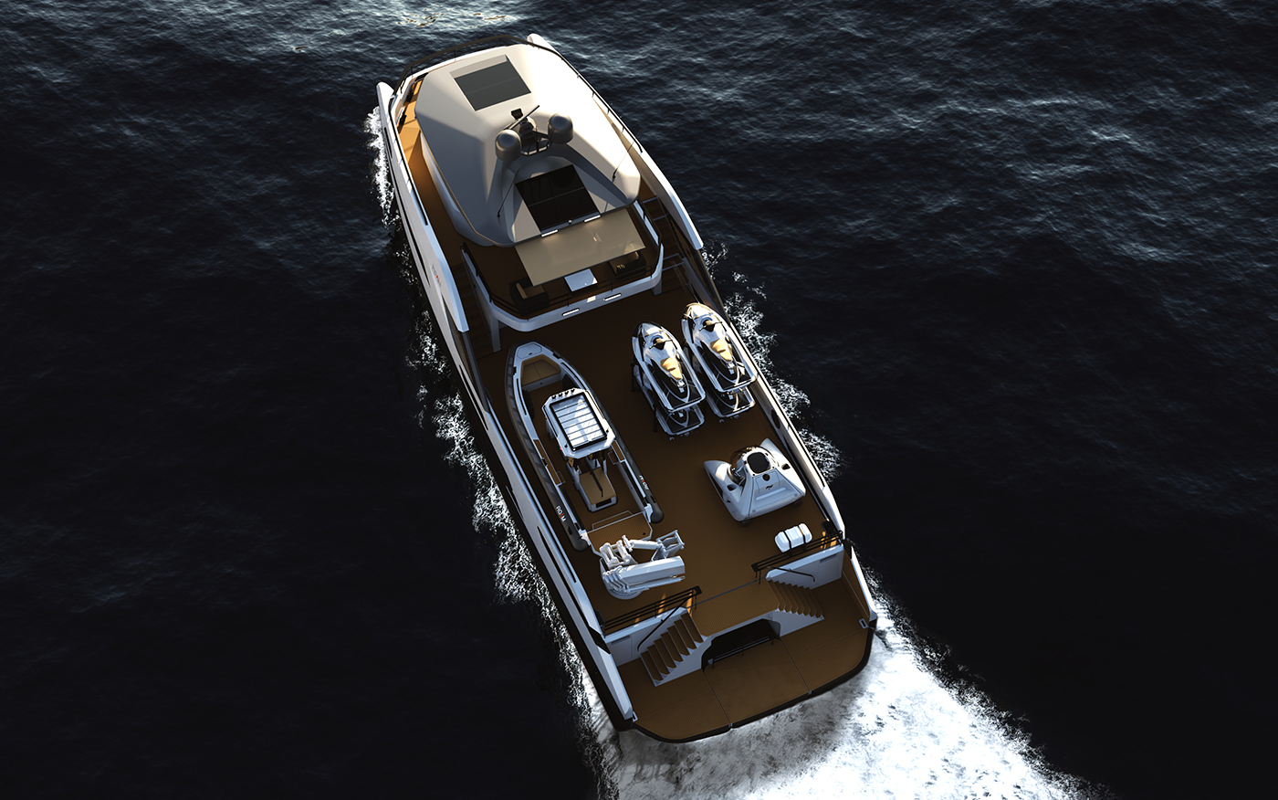 "LYNX support vessels are fit to carry all the toys, being able to take everything an owner might need – from his car, tender and submarine."