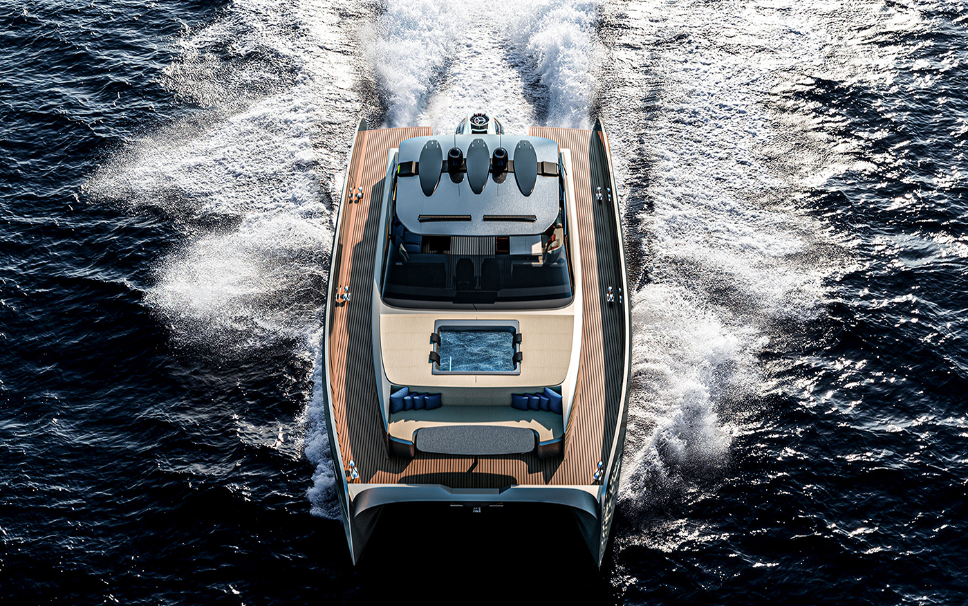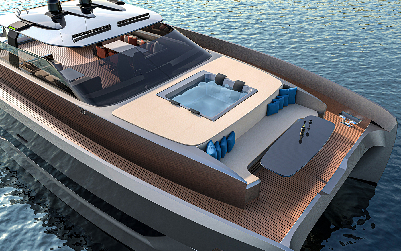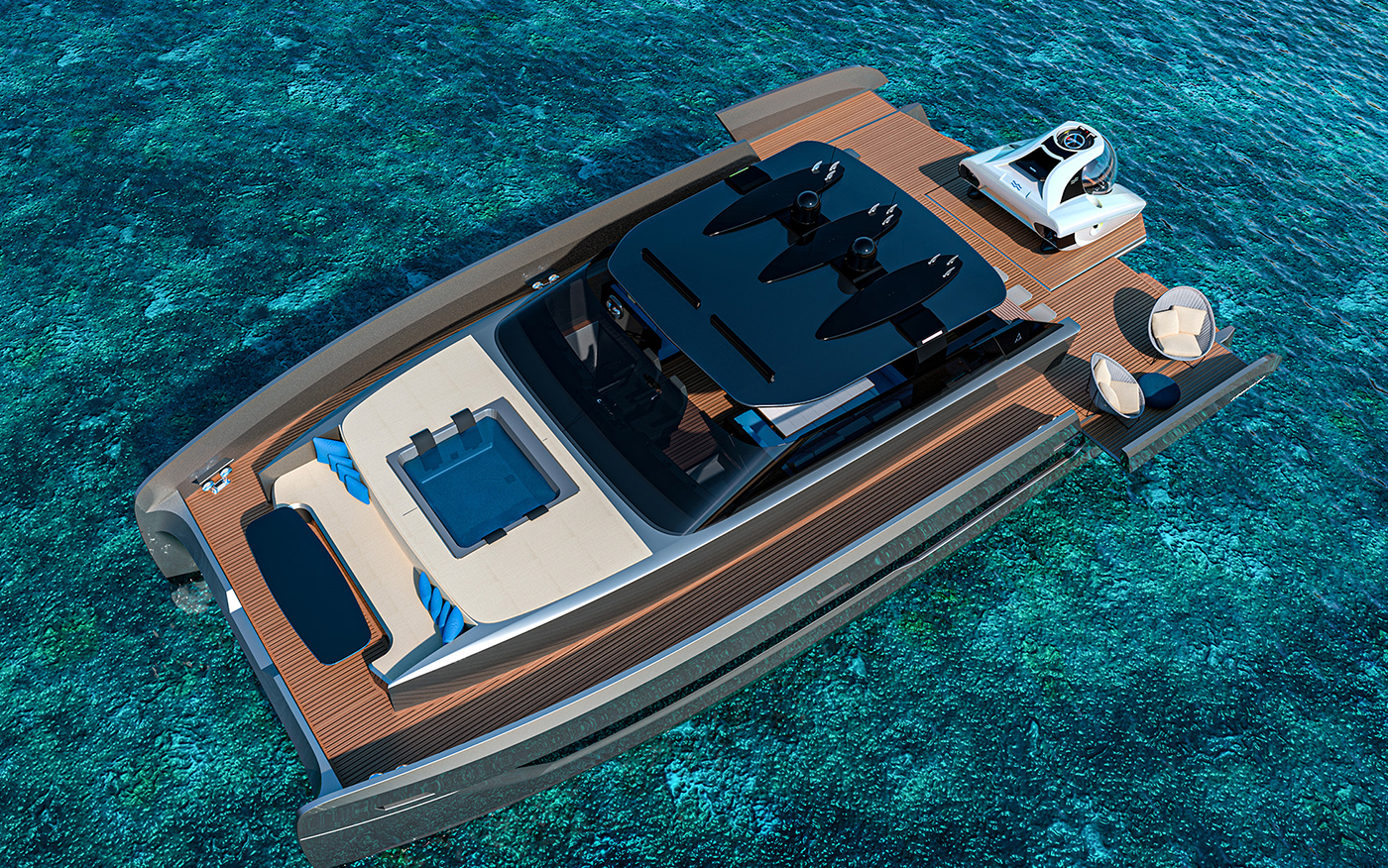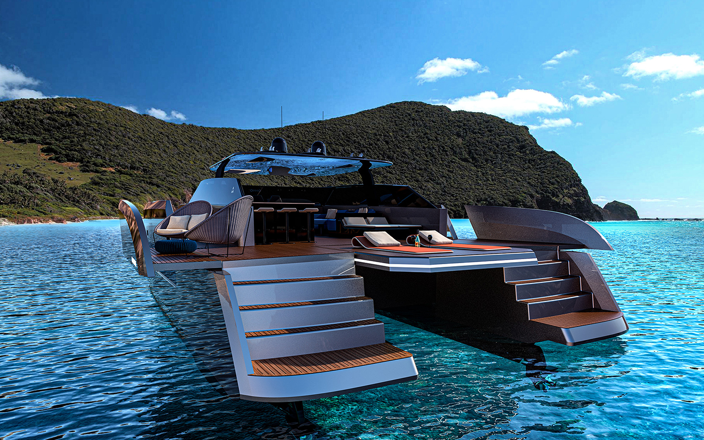 "Project Aquanaut is a 60 feet Open-Style luxurious catamaran designed by Officina Armare"