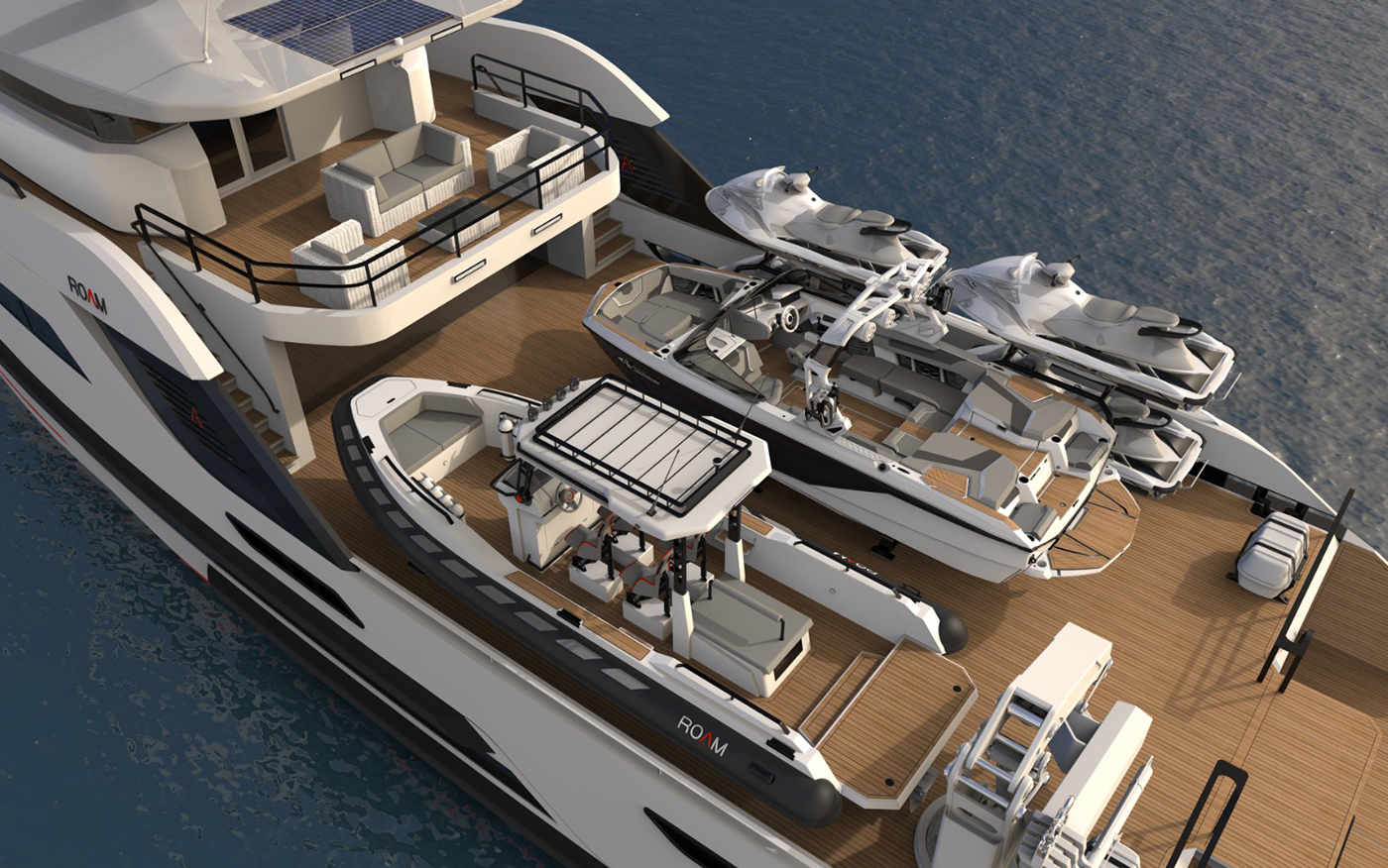 "Available in 24 meters or 27 meters, ROAM SHADOW is specifically designed to be a second yacht"