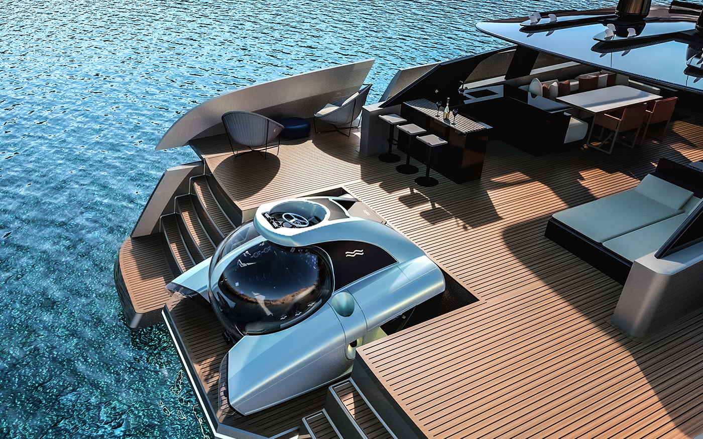In this specific case, our support vessels are fit to carry all the toys, being able to take everything an owner might need – from his car, tender and submarine. We have therefore developed a special configuration for our vessels so that they can carry respectively and at owner’s choice 1 or 2 submarines on the YXT 24 and up to 3 submarines on the YXT 34.