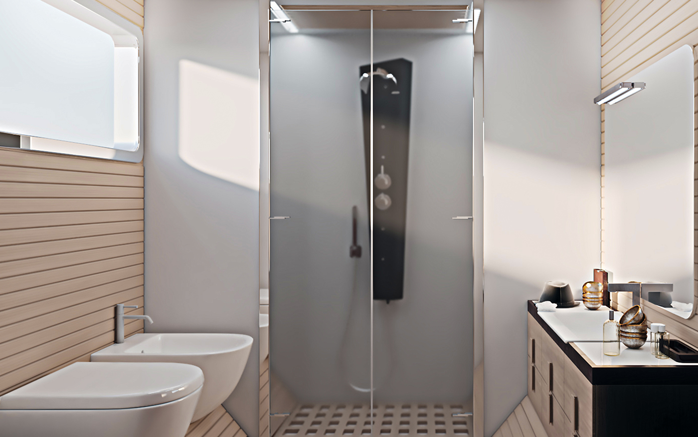 ROAM SHADOW comes equipped with a crane for heavy lifting, including easy deployment of the 2,500 kg NEMO into the water. And ROAM SHADOW’s fully enclosed indoor hangar storage can convert into a gym, spa and wellness center.
